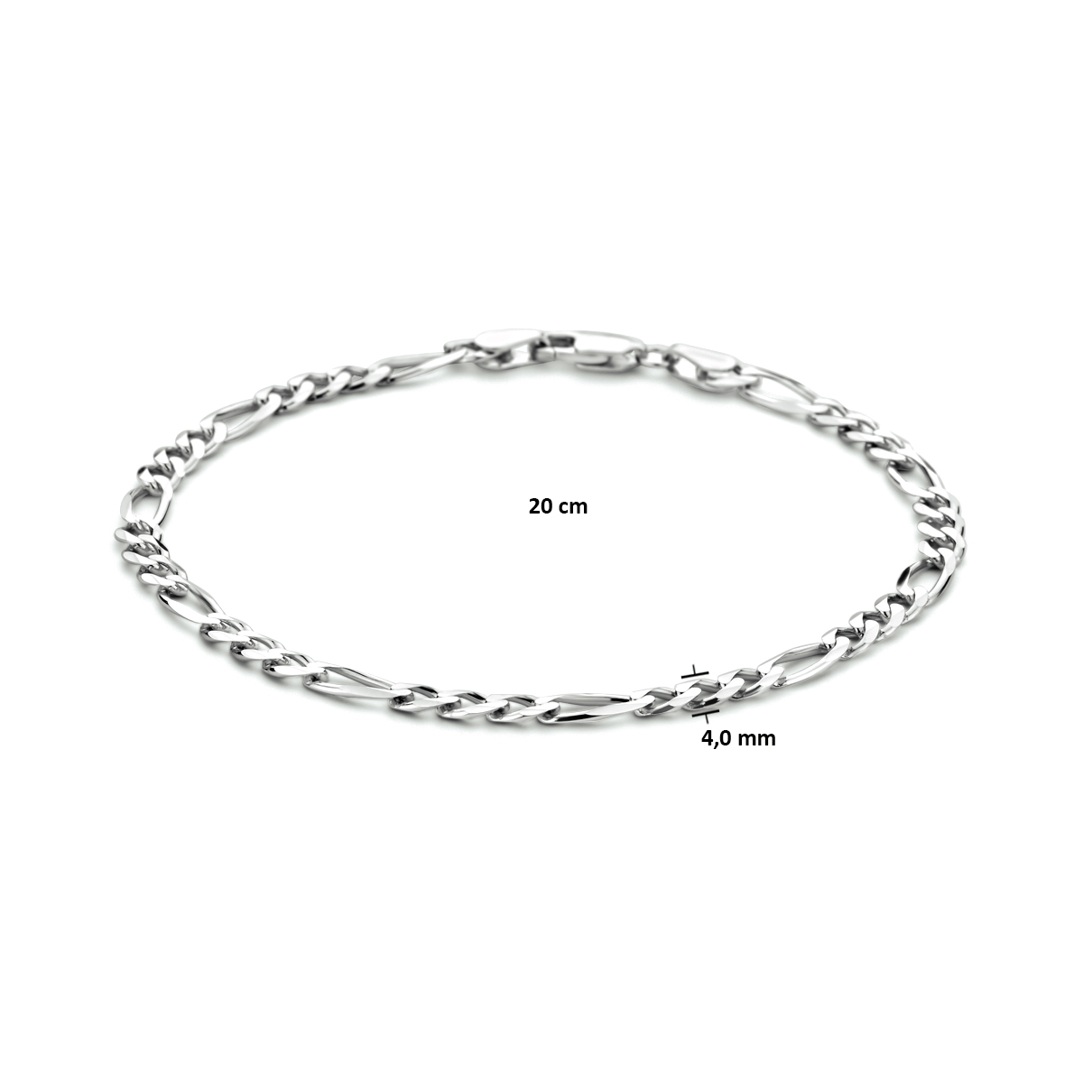 Gerhodineerd 925 zilveren figaro armband met een schakelbreedte van 4mm. De armband heeft een draaglengte van 20cm en een stevige karabijn sluiting.