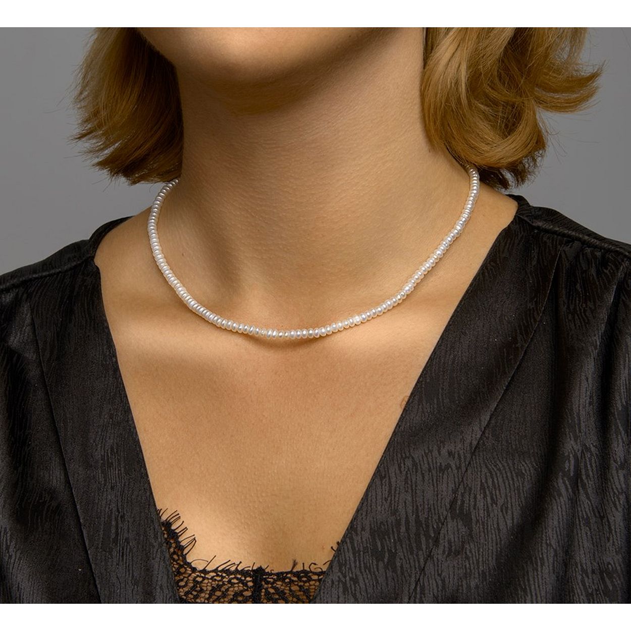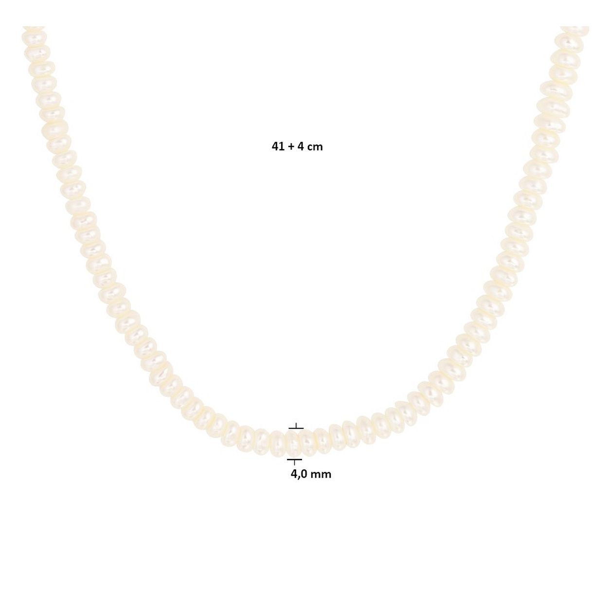 Gerhodineerd 925 zilveren collier uitgevoerd met schitterende zoetwaterparels met een breedte van 4mm. Het collier heeft een draaglengte van 41cm met een extensie van 4cm en een stevige karabijn sluiting.