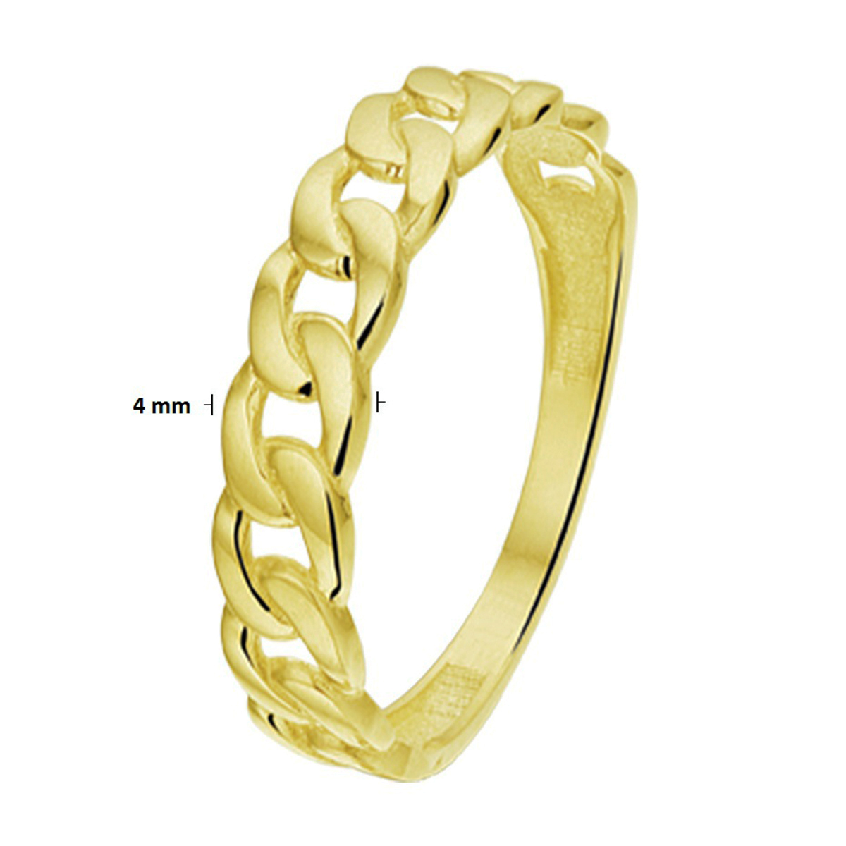 Geelgouden ring van 4mm breed uitgevoerd in een gourmet schakelmotief.