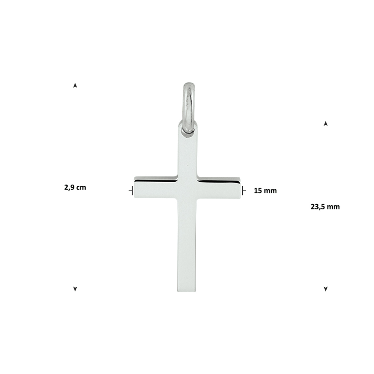Gerhodineerd zilveren hanger in de vorm van een kruis.