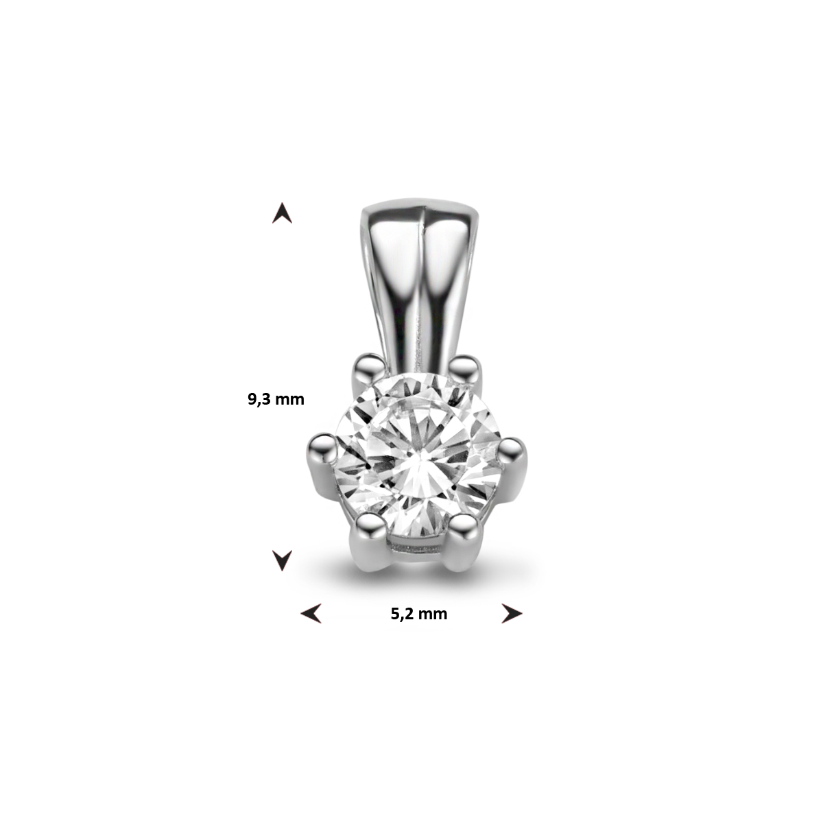 Gerhodineerd 925 zilveren hanger uitgevoerd met een schitterende zirkonia. De hanger heeft een hoogte van 9.3mm.