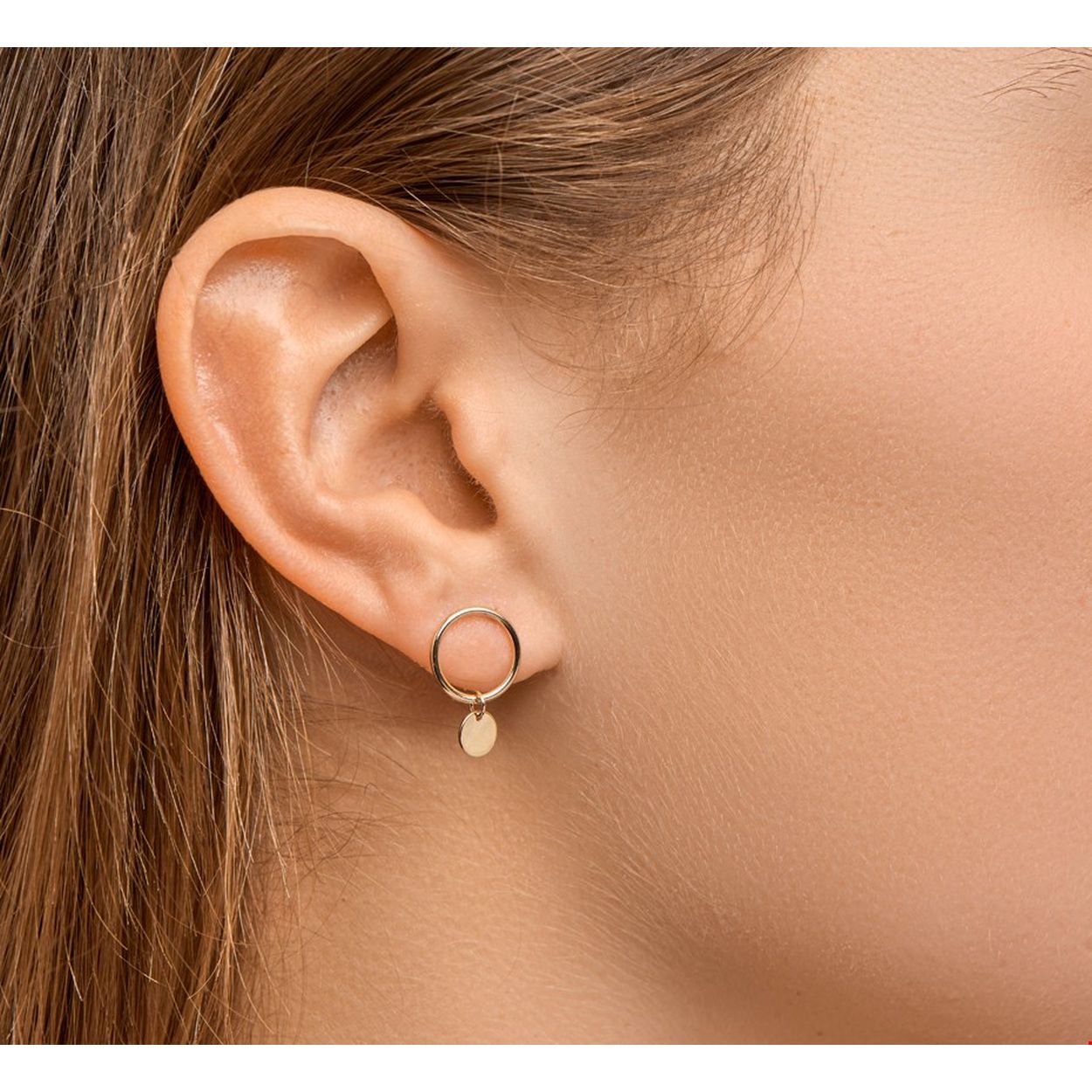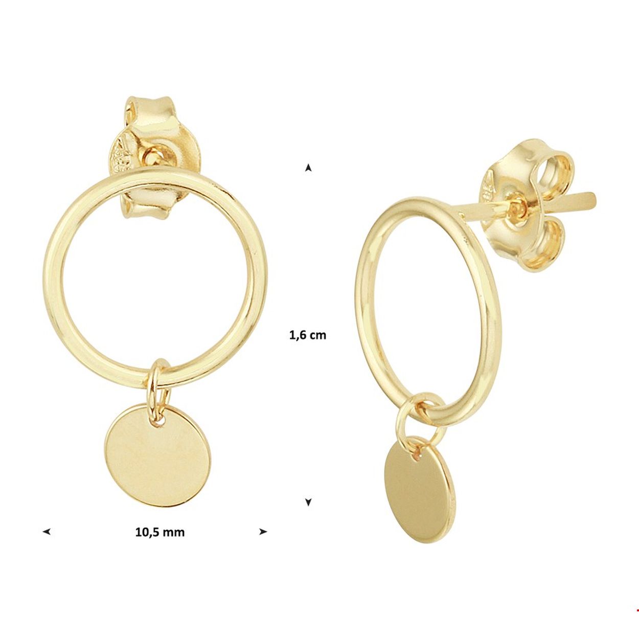 Beschrijving: Stijlvolle geelgouden oorhangers met een totale hoogte van 16mm en een diameter van 10.5mm. De oorhangers zijn goed te combineren met bijpassende rondjes sieraden uit onze collectie.