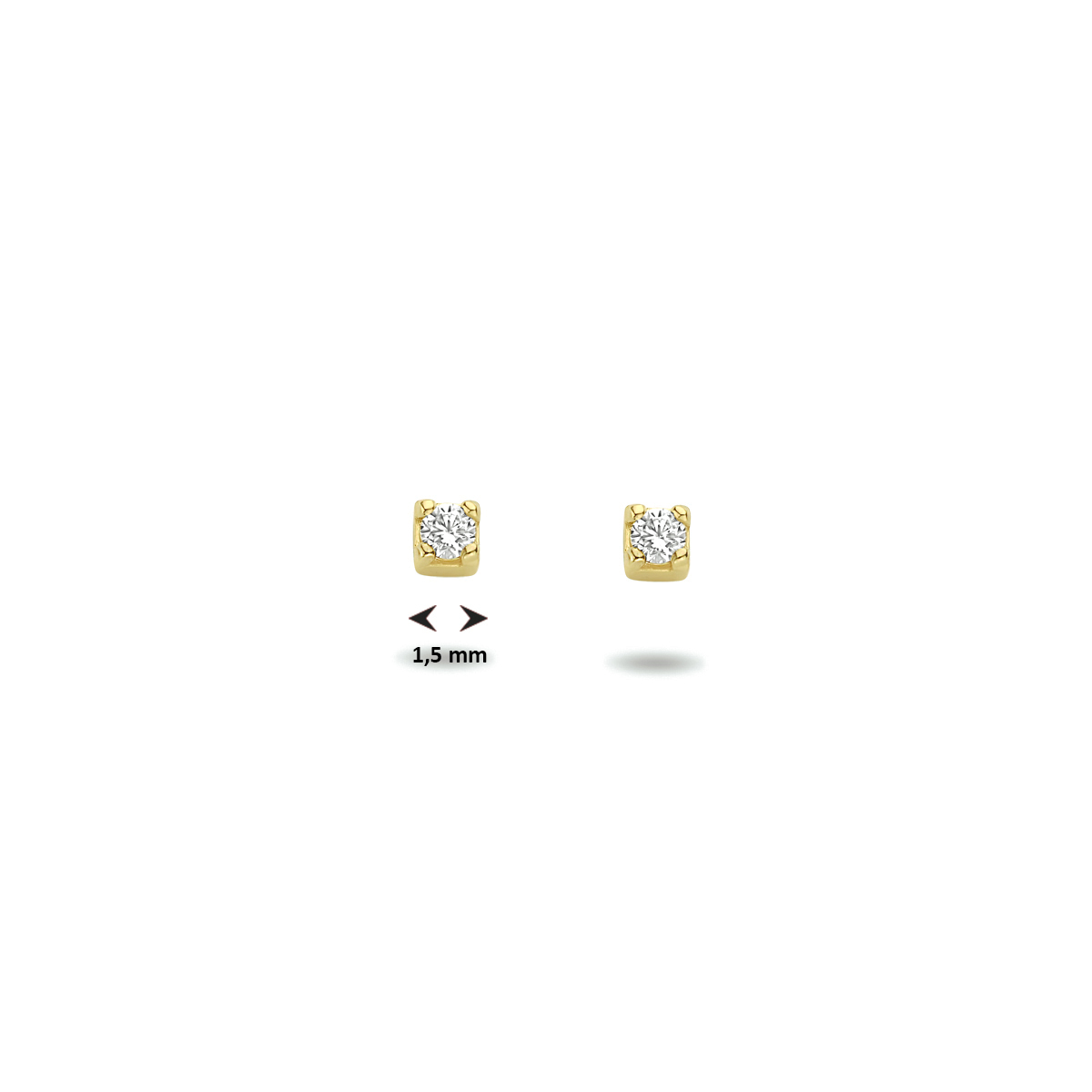 14k Geelgouden oorknoppen uitgevoerd met een heldere zirkonia. De oorknoppen hebben een diameter van 1.5mm.