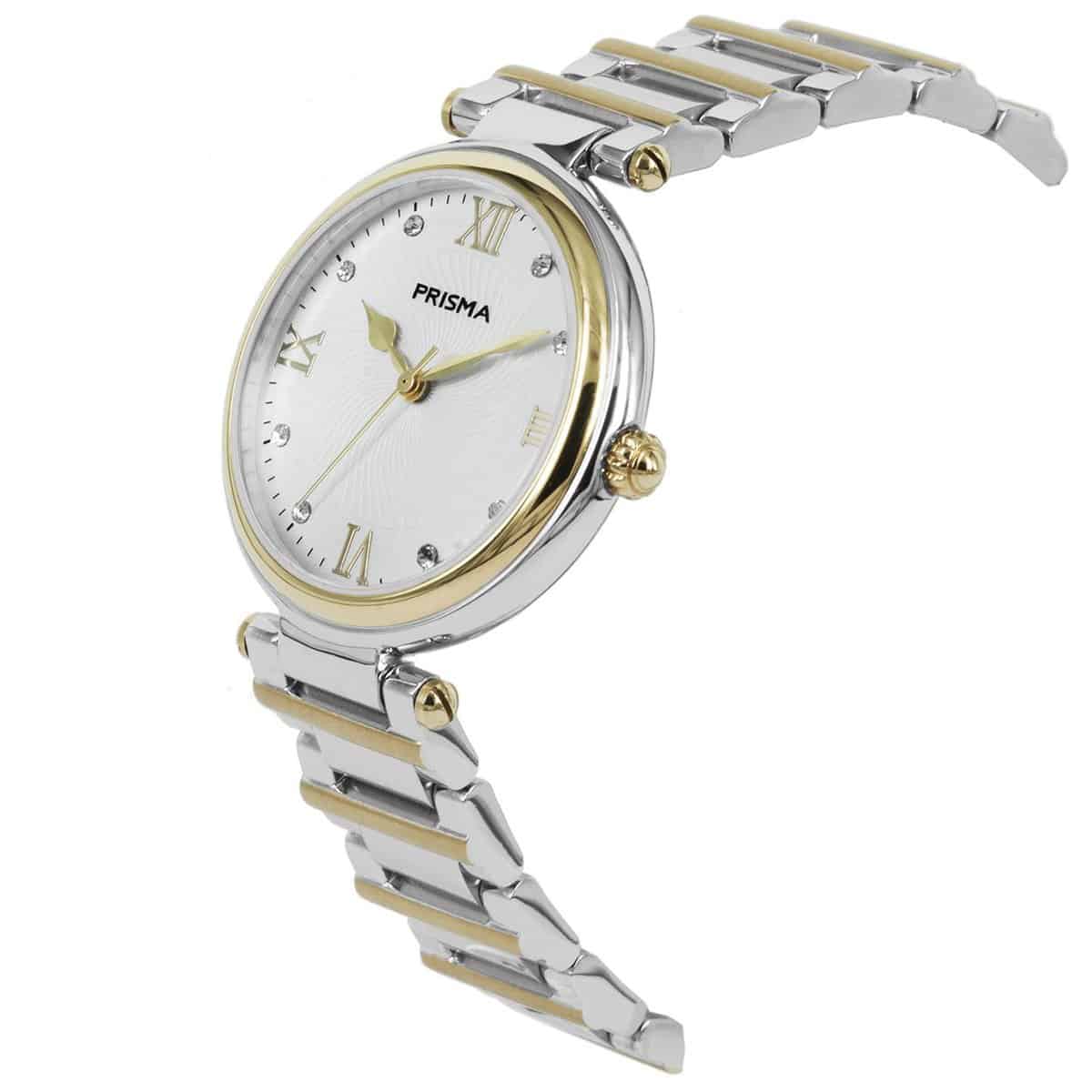 Prisma Quartz P.1453 Dames - 34mm - zirkonia bicolor - 3ATM - Edelstaal - Zwitsers uurwerk