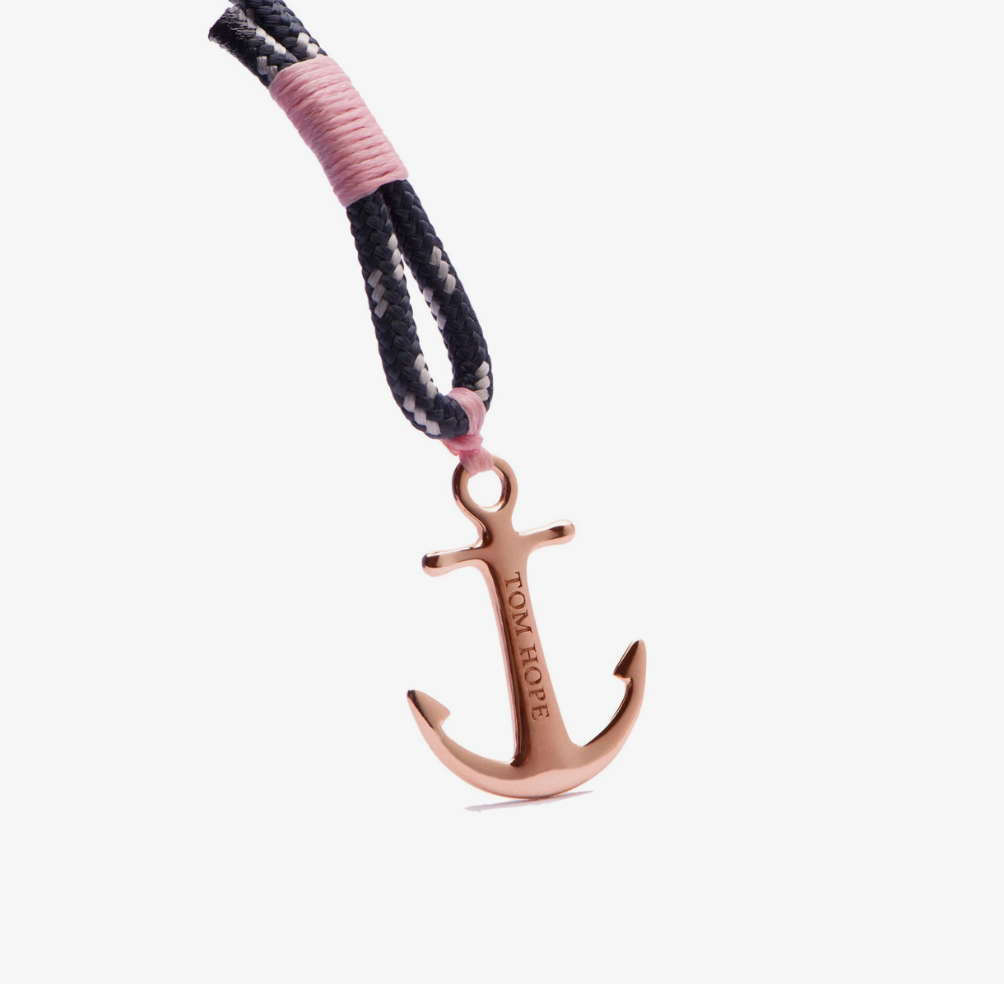 De Rose Gold bracelet bezit de essentie van moderne luxe en klassieke verfijning. Met onze karakteristieke in rose gold vergulde zilveren anker, blauw bies en roze takelgaren. Deze armband is ideaal voor alle gelegenheden.