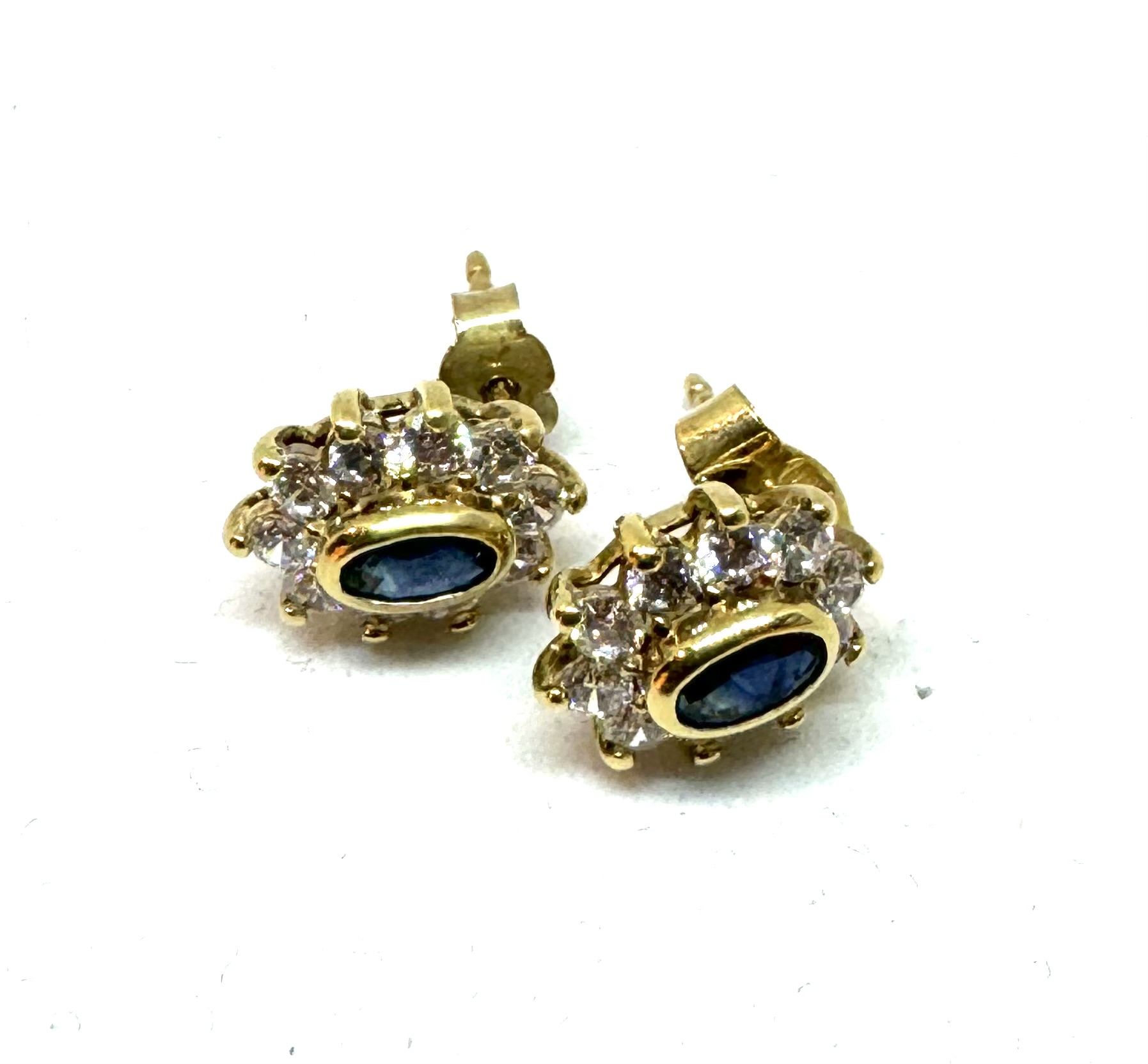 14 krt gouden oorstekers met zirkonia en blauwe saffier
