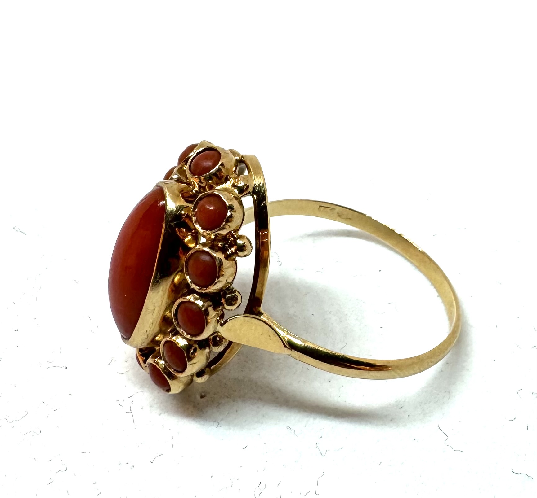 14 krt gouden ring met bloedkoraal entourage